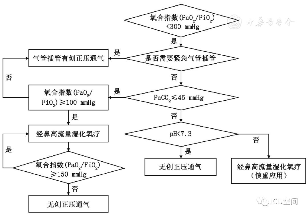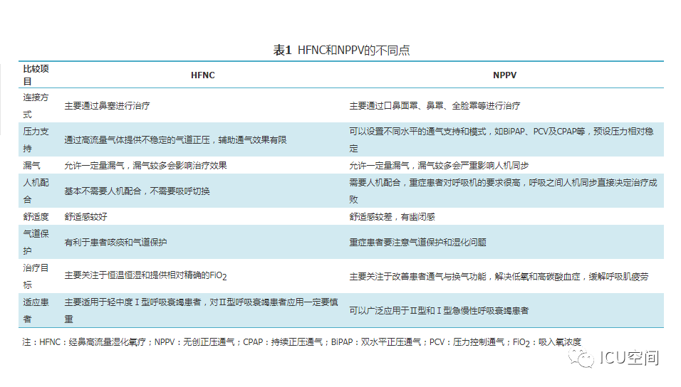 圖1 經(jīng)鼻高流量濕化氧療儀示意圖 人類開始氧氣治療的歷史可回溯到18世紀后葉,20世紀初即開始應(yīng)用橡膠制作的鼻導(dǎo)管進行氧療[4]。1987年美國研發(fā)了最高流量可達20 L/min的氧療加溫濕化裝置MT-1000,應(yīng)用于囊性肺纖維化等患者氧療促進下呼吸道分泌物排出。近10年來,HFNC進入快速發(fā)展和臨床廣泛應(yīng)用階段,國際主流HFNC裝置都是采用無創(chuàng)呼吸機的工作原理:用空氧混合器進行空氧混合,吸入氧濃度(FiO2)為21%~100%,應(yīng)用渦輪提供高流量的氣體,采用呼吸機應(yīng)用的加溫加濕器和管路加熱導(dǎo)絲對吸入氣體進行全程加溫加濕,并通過近患者端實時監(jiān)測溫度和氧濃度進行動態(tài)調(diào)控。另外,部分呼吸機廠家在有創(chuàng)和無創(chuàng)呼吸機上設(shè)置了HFNC功能,進一步拓展了呼吸機的臨床適用范圍,這也是未來的發(fā)展方向[5]。國內(nèi)HFNC的歷史僅有5年左右,在前期仿制國外HFNC的基礎(chǔ)上進行創(chuàng)新,在很短的時間內(nèi)形成自己的特色,如可自動調(diào)節(jié)和精確調(diào)控FiO2(21%~100%)、溫度控制精度可達到±1 ℃、呼吸管路采用免消毒氣路技術(shù)等。 二、HFNC設(shè)備的結(jié)構(gòu)特點及其工作原理 (一)HFNC的結(jié)構(gòu)特點 HFNC按其結(jié)構(gòu)特點可分為3大組成部分。 (1)氣體的空氧混合部分:其作用是將空氣和氧氣按預(yù)設(shè)氧濃度在渦輪前進行混合。氧濃度調(diào)控有2種方法,一種是通過浮標(biāo)式氧氣流量計調(diào)節(jié)氧氣流量實現(xiàn)對氧濃度的控制,該方法無法預(yù)設(shè)氧濃度,只能通過調(diào)節(jié)氧氣流量產(chǎn)生實際的FiO2;一種是微型比例閥和超聲氧濃度傳感器實現(xiàn)對氧濃度的控制,可以預(yù)設(shè)FiO2。 (2)氣體的加溫濕化部分:其作用是將空氧混合后的氣體進行加溫濕化。 (3)氣體的輸送部分:其作用是保證已完成加溫濕化的空氧混合氣體以恒溫恒濕恒流速的方式輸送至患者端。高流量濕化氧療儀與患者連接部分為高流量鼻塞,高流量鼻塞的尖端呈斜面型的出口,質(zhì)地柔軟,用一個具有彈性可調(diào)節(jié)的過耳頭帶固定于患者面部。 (二)HFNC的生理學(xué)機制 HFNC通過輸送高流速氣體的方式,可以維持一定水平的PEEP,維持肺泡開放,有利于呼氣末肺泡復(fù)張和氣血交換。Corley等[6]通過使用電阻抗斷層掃描(EIT)測量心臟手術(shù)后肺容積的生理學(xué)研究證明了HFNC可促進呼氣末肺容積增加,表明HFNC通過高流量產(chǎn)生的PEEP作用促進肺復(fù)張。有研究結(jié)果顯示,HFNC流量每增加10 L/min,患者咽腔PEEP就增加0.5~1 cmH2O(1 cmH2O=0.098 kPa)[7]。流量增加到60 L/min時,閉口的女性受試者咽腔PEEP可達到8.7 cmH2O左右,男性為5.4 cmH2O;張口呼吸情況下女性為3.1 cmH2O,男性為2.6 cmH2O左右。但值得注意的是,由于HFNC允許大量漏氣,患者若張口呼吸必然導(dǎo)致PEEP水平不穩(wěn)定[6]。 HFNC通過為患者提供恒定的、可調(diào)節(jié)的高流速空氧混合氣體,沖刷患者呼氣末殘留在鼻腔、口腔及咽部的解剖無效腔的氣體,可明顯減少患者下一次吸氣時吸入的CO2的含量[8]。M?ller等[9]通過81 mKr氣體測定HFNC對10名健康人鼻咽部和3例氣管切開患者CO2的清除率,發(fā)現(xiàn)CO2清除率和HFNC的氣體流速和佩戴時間直接相關(guān)。 HFNC主要關(guān)注于提供相對精確的恒溫和恒濕的高流量氧療,因而能夠更符合人體生理情況下呼吸道的氣體溫度及濕度,降低醫(yī)用干冷氣體對上下呼吸道黏液纖毛系統(tǒng)功能和黏膜的影響[10]。與普通氧療相比,使用HFNC可以明顯降低患者鼻、口、咽喉的干燥評分,有助于稀釋痰液和排痰,修復(fù)和維持人呼吸道上皮細胞和纖毛的結(jié)構(gòu)和功能,提高患者的舒適度,降低下呼吸道感染的發(fā)生幾率[6,11] 鼻咽腔通過提供較大的表面積對吸入氣體進行濕化和溫化,但同時吸入氣體之間的摩擦?xí)饬鳟a(chǎn)生明顯的阻力[12]。HFNC可以提供滿足患者吸氣流速需求、恒溫恒濕的高流量氣體,患者在吸氣時不需要用力吸氣也不需要對吸入氣體進行加溫加濕,這樣不僅降低吸氣阻力,同時避免患者對吸入氣體進行溫化濕化所需的代謝消耗,減少患者的呼吸做功[13,14]。而且與常規(guī)氧療輸出的低流量氧氣方式相比,HFNC能提供符合或超過患者所需的吸氣峰流速,減少了吸氣時空氣的稀釋作用,使得吸入氧氣的濃度不會受到患者的呼吸頻率、吸氣流速、呼吸形態(tài)等因素的影響,為患者提供精確穩(wěn)定的吸氧濃度,有利于改善患者氧合[6]。患者低氧狀態(tài)得到改善,呼吸更舒適,自主用力呼吸減弱,加之PEEP作用,呼吸功會隨之降低[15]。 三、HFNC與NPPV的異同點 HFNC和NPPV在治療原理上存在許多相似之處。從工作原理上看,都是電動渦輪機驅(qū)動形成高速氣流,通過電磁閥實現(xiàn)流量可控,氣流均可加溫加濕,都是傳統(tǒng)意義上的正壓通氣,能夠維持一定水平的PEEP,實現(xiàn)氣道開放,減少死腔,改善通氣,且允許開放氣道發(fā)生漏氣。HFNC和NPPV的不同點見表1[16,17]。 表1 HFNC和NPPV的不同點 四、HFNC臨床適應(yīng)癥及禁忌癥 由于各研究結(jié)果間的差異[18,19,20],目前HFNC臨床應(yīng)用的適應(yīng)證和禁忌證尚無統(tǒng)一的標(biāo)準。根據(jù)已發(fā)表的HFNC臨床應(yīng)用研究證據(jù),目前認為HFNC主要應(yīng)用于治療輕~中度Ⅰ型呼吸衰竭患者[21,2