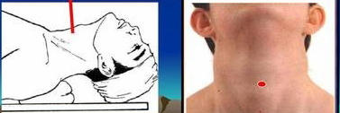 ● 頸中線甲狀軟骨下緣與環(huán)狀軟骨弓上緣之間即為環(huán)甲膜穿刺點。