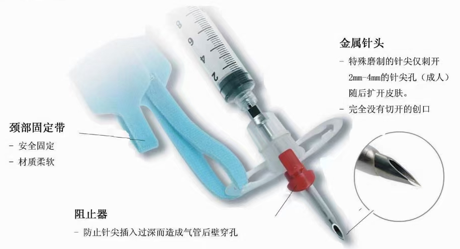 3、阻止器可以防止針頭插入過深,降低氣管壁穿孔的危險;