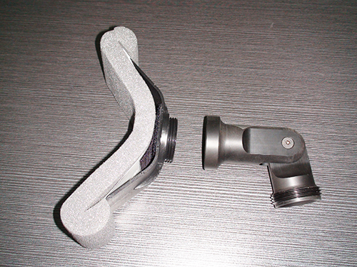 1. 將叩擊接合器(彎狀的連結(jié)裝置)的一端旋進(jìn)纜線裝配頭的面板,另一端旋入叩擊頭,將接好的叩擊頭放在主機邊的支架上。
